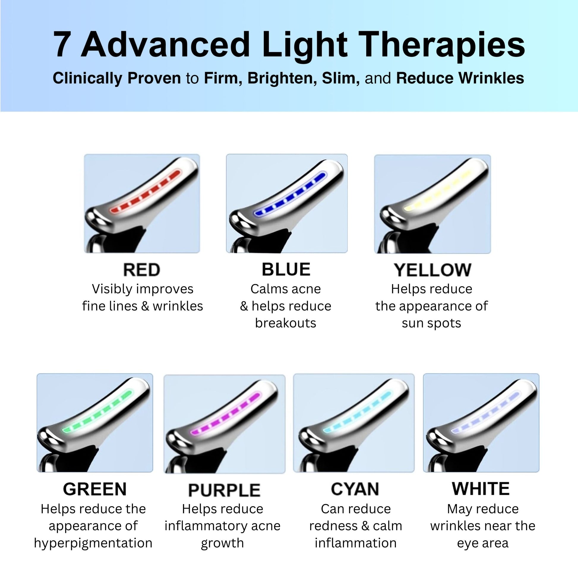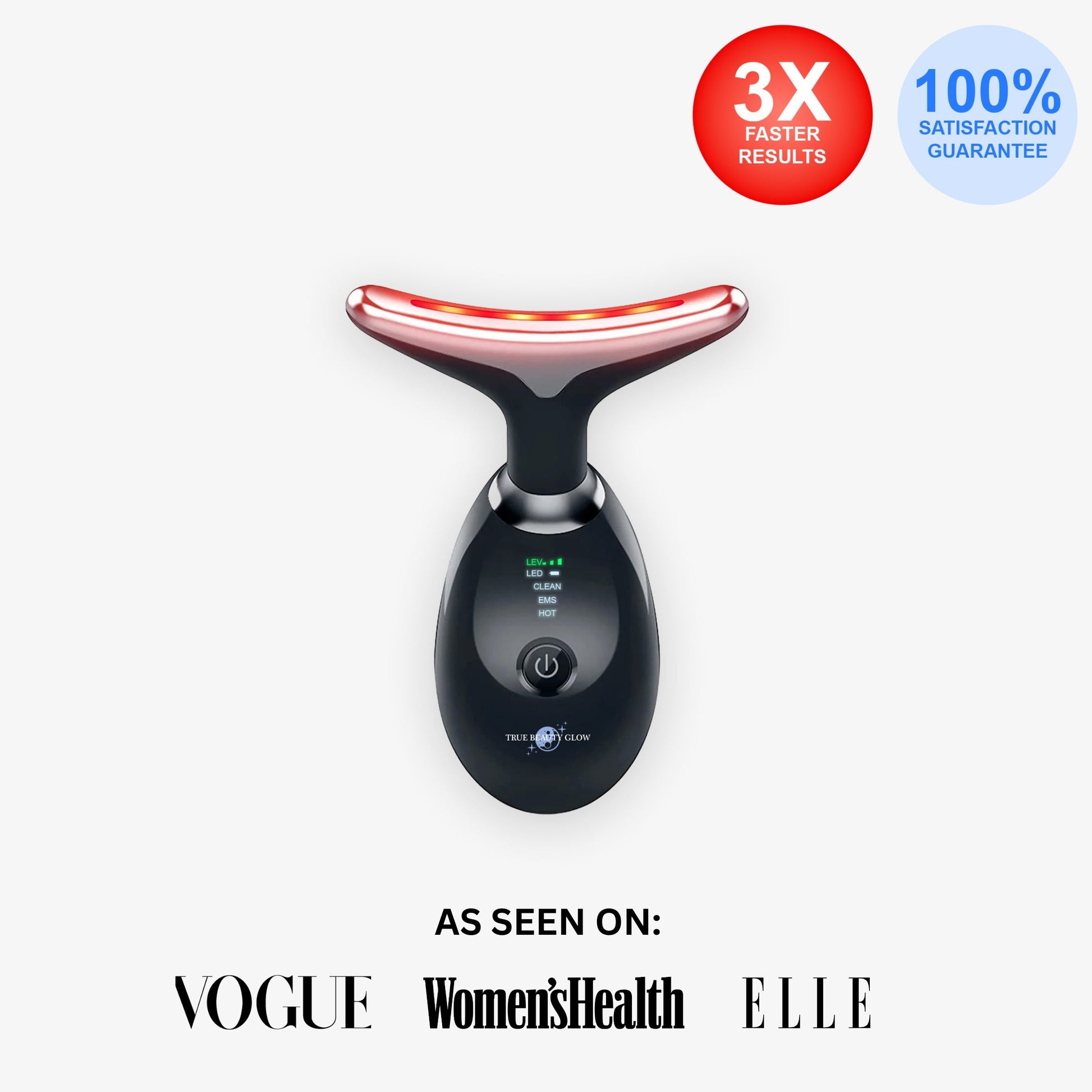 The True Beauty Glow Facial Sculptor is a premium facial massager equipped with EMS and 7 different LED modes clinically proven to slim your face and neck, promote facial lifting, reduce wrinkles, combat acne, and more!